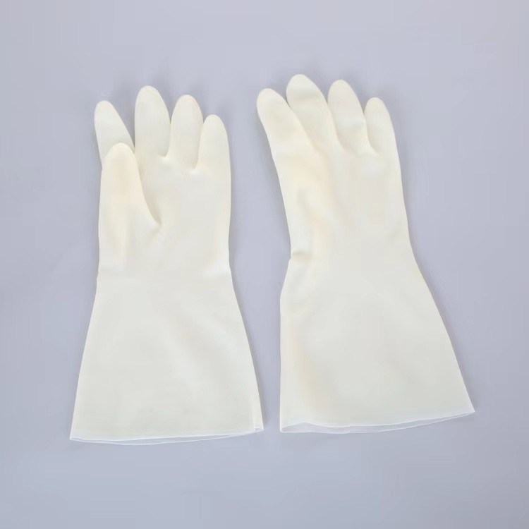 Gant blanc Unflock de ménage de nitriles de 33 cm rayant la manchette extra-longue pour le nettoyage à la maison